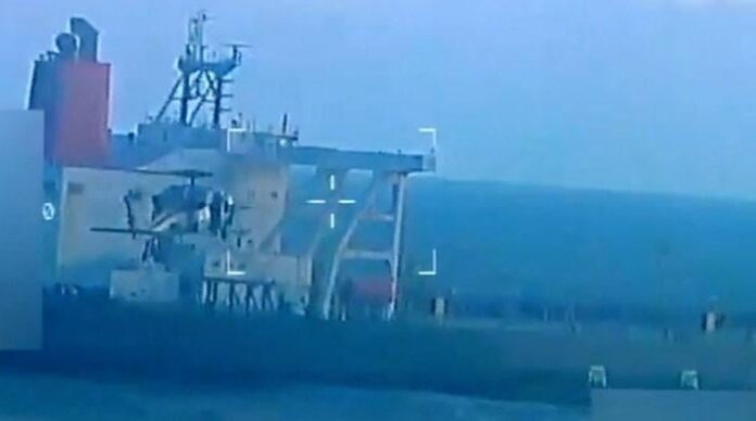 A 45-second video posted by Bondi showed two helicopters approaching a vessel and armed individuals in camouflage rappelling onto it.